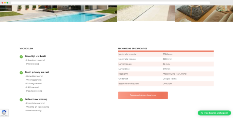 Het ontwikkelen van onze nieuwe website had meerdere doelen, waarbij onze voornaamste ambitie lag in het vergroten van onze aanwezigheid in de wereld van zonwering. Dankzij doordachte SEO-strategieën hebben we een organische groei weten te bewerkstelligen in het aantal aanvragen. In de eerste 4 maanden na lancering mochten we bij Zonweringonline maandelijks zo’n 5 nieuwe klanten verwelkomen via organische zoekresultaten. Bovendien streven we ernaar om de klantervaring te verbeteren door een linkje naar onze uitgebreide productpagina toe te voegen aan elke offerte. Op deze manier kunnen klanten moeiteloos toegang krijgen tot gedetailleerde informatie over onze producten, waardoor we hun behoeften nog beter kunnen vervullen.